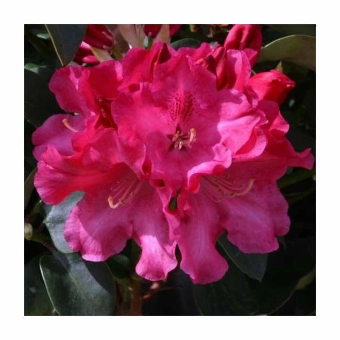 Showy rosy red flowers in April. Evergreen plant. Good for rockeries and tubs.