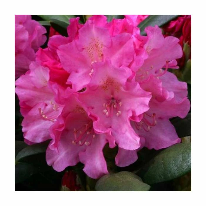 Lavender pink flowers gradually lighten in colour as they open in May. Compact evergreen shrub. Ideal in garden borders and tubs.
