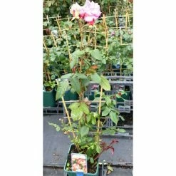 ‘Giardina’ is a modern climbing rose with old fashioned style flowers. Repeat flowering it blooms in the early summer and continues all they way through to autumn. It produces gorgeous, large, soft-pink, double flowers which give off a sweet, fruity fragrance. The foliage is dark green, glossy and has good disease resistance. With a strong climbing habit it would look brilliant trained up over an arch, pergola or trellis.